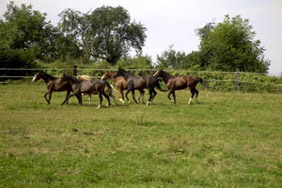 KoppelnDie Pferde können je nach Wetterlage in den jeweiligen Paddockgruppen auf die Koppel gebracht werden. Aufzuchtpferde verbringen den Sommer außerhalb auf großen Weiden. | ![]() |