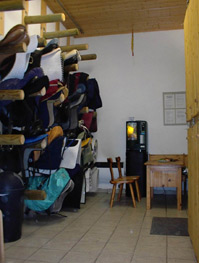 SattelkammerDie Sattelkammer beinhaltet neben Stauraum für Sättel und Zubehör eine kleine Sitzecke sowie einen Kaffeeautomaten, der sich vor allem im Winter größter Beliebtheit erfreut. |